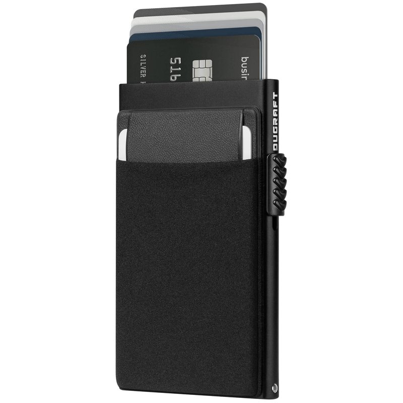 DUGRAFT Card Holder with Money Pocket Mens Minimalist Slim Aluminum Metal Pop Up Wallet RFID Blocking Card Case with Gift Box, Holds 5 Cards and Cash (Black)