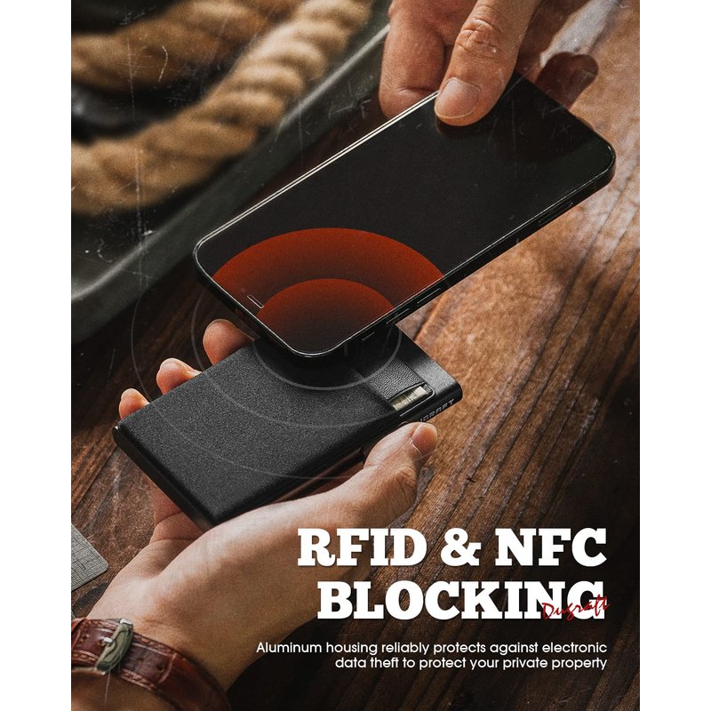 - RFID Blocking - Protect your credit cards from unauthorized and contactless scanning. Stop thieves from cloning your bank cards and keep your identity information secure (aluminum card holder only).