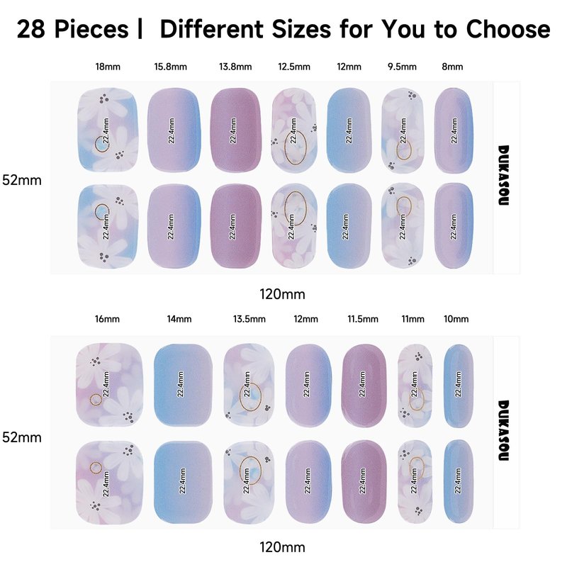 DUKASOU 28pcs Semi Cured Gel Nail Strips, Gel Nail Stickers Kit Work with Any UV Nail Lamps, Long Lasting Gel Nail Wraps for Girl Women, includes Prep Pads, Nail File & Wood Stick(Camellia Sea)