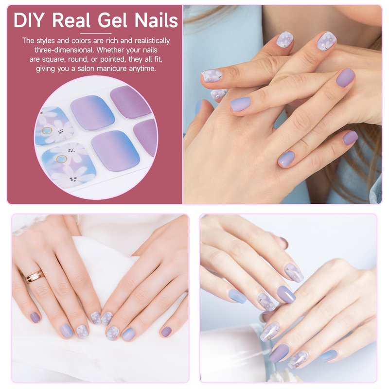- GEL NAIL STRIPS KIT: The semi cured gel nail strips included 28pcs gel nail polish strip in different sizes, with 2 prep pads, a nail file and a wood stick. Whether your nails are square, round or pointed, you can use our gel nail stickers. It is the best gift choice for Valentine's Day, Mother's Day and Christmas.