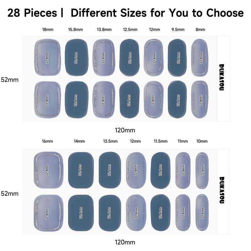 DUKASOU 28pcs Semi Cured Gel Nail Strips, Gel Nail Stickers Kit Work with Any UV Nail Lamps, Long Lasting Gel Nail Wraps for Women, includes Prep Pads, Nail File & Wood Stick(Light Blue)
