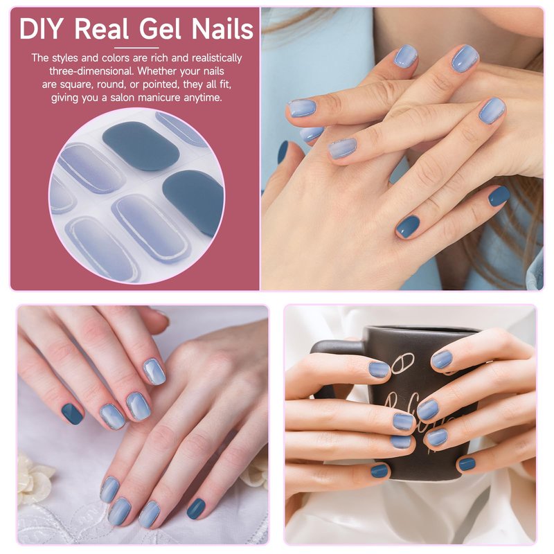 - GEL NAIL STRIPS KIT: The semi cured gel nail strips included 28pcs gel nail polish strip in different sizes, with 2 prep pads, a nail file and a wood stick. Whether your nails are square, round or pointed, you can use our gel nail stickers. It is the best gift choice for Valentine's Day, Mother's Day and Christmas.