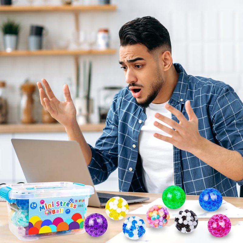 - 【Value Package】You will get 24pcs colorful stress balls, perfect for adults to relieve stress and increase focus. Package also comes with a plastic box, all stress balls have been packed in it.