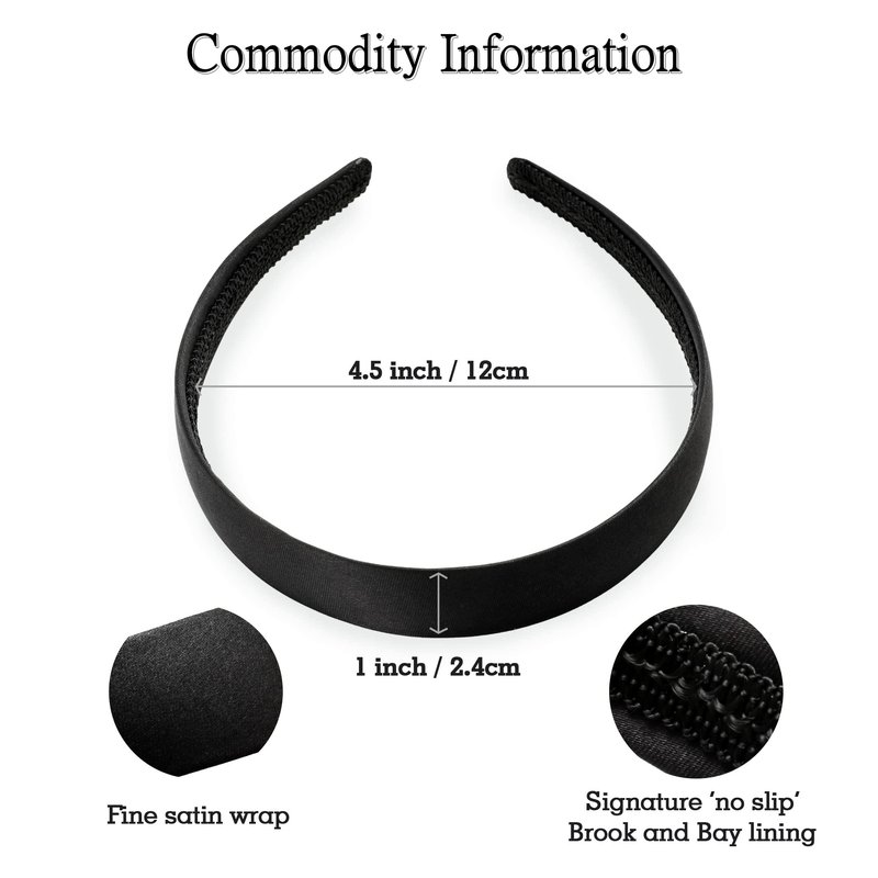 Dulier Black 1 Inch Satin Hard Headband Solid Hair band for Women and Girls