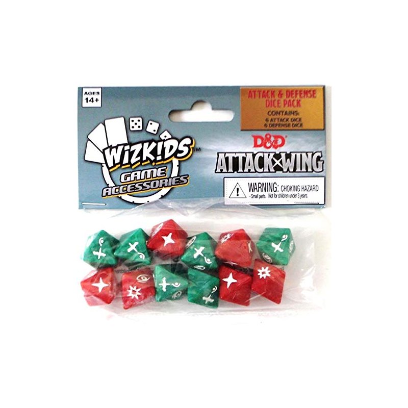 Each Dice Set features 12 poly-bagged dice (six Attack Dice and six Defense Dice) for use with D&D Attack Wing.