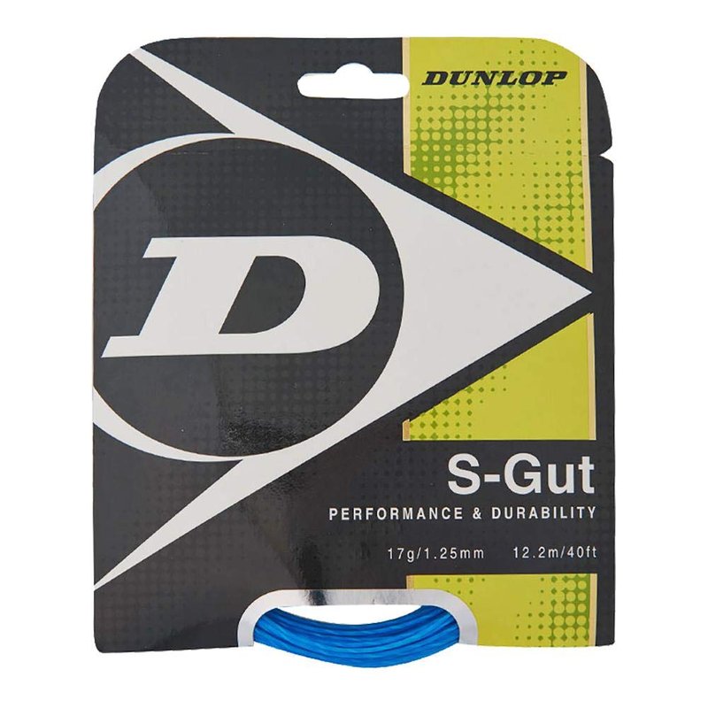 - Dunlop Sports S-Gut tennis string is a premium, multifilament string delivering all-around playability and durability. Highly elastic synthetic fibers give this string its power, featuring a special PU outer coating for added durability.