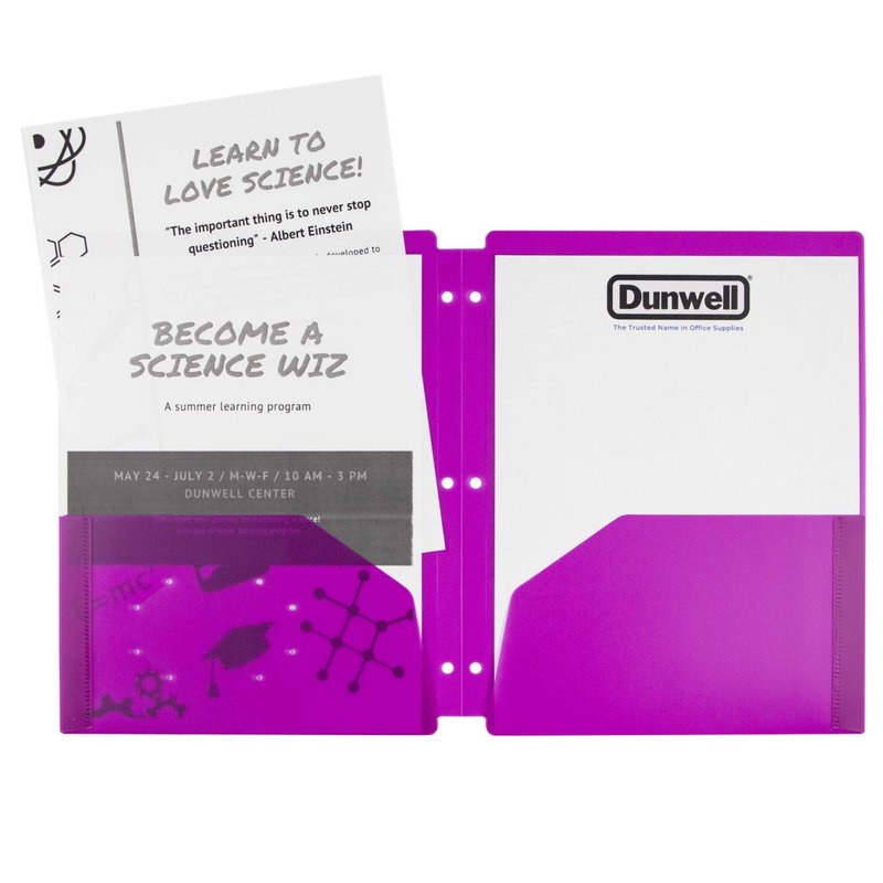 Dunwell 2-pocket folders are offered in various multipack sets and come in vibrant colors including Lively Red, Liberty Blue, Assorted Rainbow Colors, and Professional Basic Black. Look for other Dunwell products, including 2 pocket poly folders, 3 hole punch pocket folders, pocket folders with prongs, 3 tab filing folders, dry erase calendars, magazine boxes and more. Appealing office supplies, school supplies pocket folders and other basics from an AMERICAN OWNED family business.