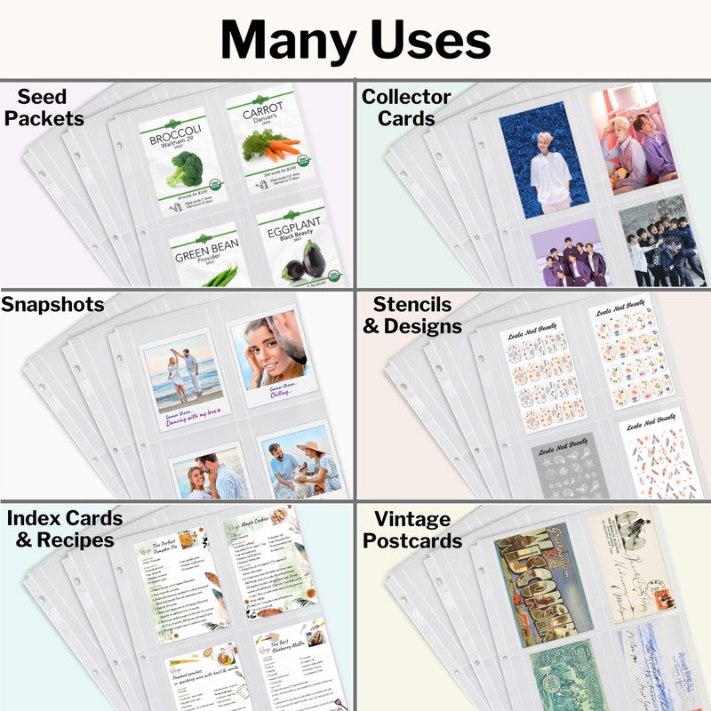 - Many Uses: 3.5x5 Photos, pictures, scrapbook, collector cards, seed binder, note cards, flash cards, 5x3 index cards. Photo album refill pages, Archival Supplies by Dunwell