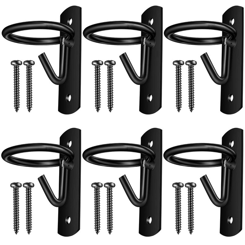 Dunzy 6 Pcs Bucket Hooks for Horses Equestrian Bucket Hook Metal Water Bucket Hangers Horse Stalls Feed Bucket Barn Farmhouse Supplies (Black)