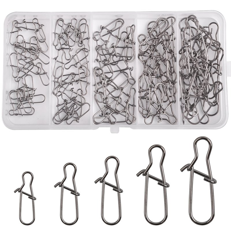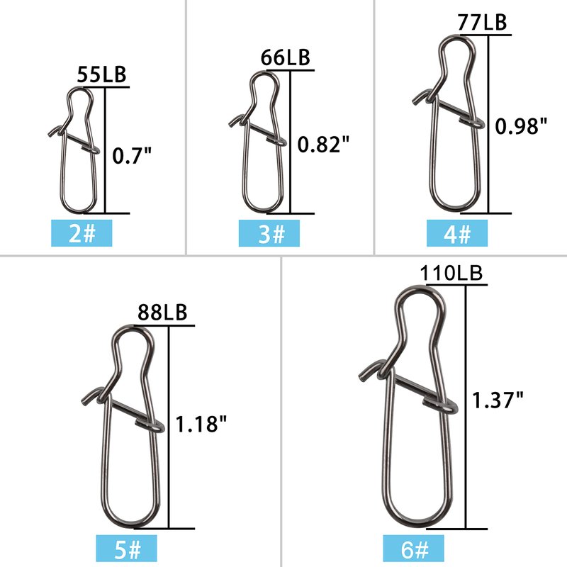 - Size: 2#, 3#, 4#, 5#, 6# (20pcs per size, 100pcs fishing gear duo-lock snaps in a portable plastic box)