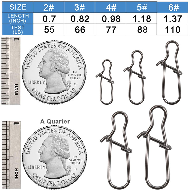 - fishing snaps and clips Provide maximum strength with minimal weight, they allow you to quickly and efficiently change and attach your lures and leaders