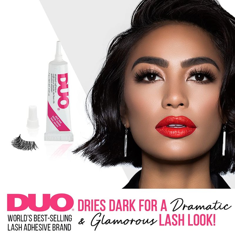 - Applies Dark, Dries Black Strip Lash Glue: Partner up your fave faux lashes with DUO Dark Tone Striplash Adhesive to achieve that seamless dramatic-eyes look. Comes in a fast-dry formula, sets black, and can firmly hold your fab falsies for long hours.