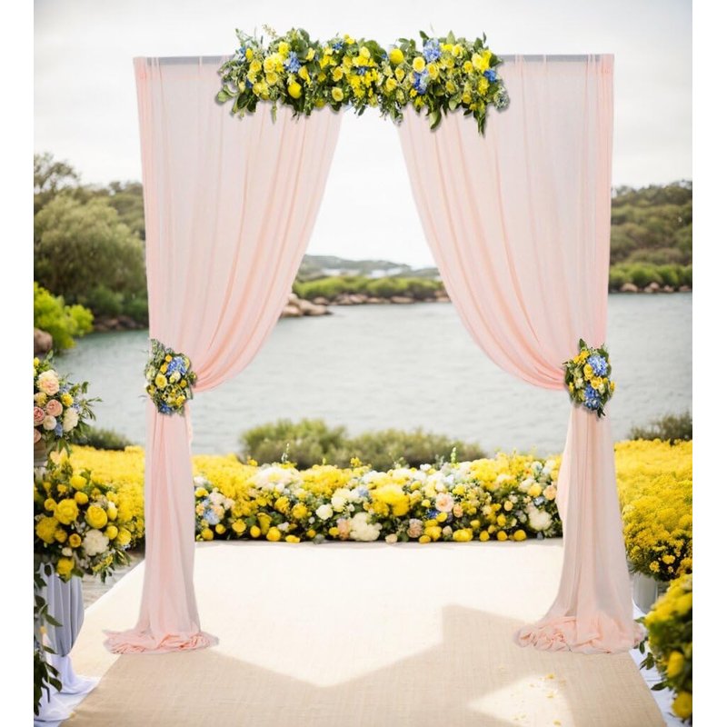 - ★ ELEGANT CHIFFON BACKDROP DRAPES: Wedding chiffon backdrop ideal for parties,weddings,baby shower,bridal shower,birthday party,graduation, photo booth props,hen party,Ceremony, engagement,anniversary, 21 birthday , baptism, housewarming party or other event decor. Chiffon fabric drape for wedding party stage decoration is very beautiful .