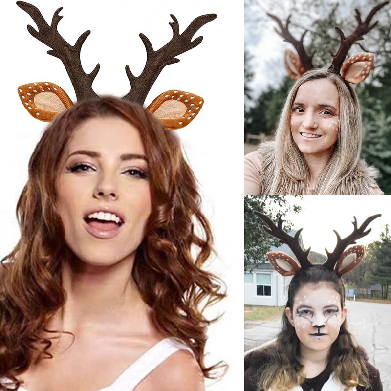 DUOJINSANXI Reindeer Antlers Headband, Reindeer Ears, Deer Antler Headband, Christmas Headband, Makeup Headband Animal, Christmas Costumes for Women Adults Christmas Halloween Cosplay Party Favors