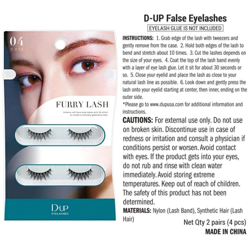 Our Furry Lash collection blends seamlessly with your natural lashes, giving you a beautiful and discreet look perfect for daily wear or special occasions.DUP False Eyelashes offer the ultimate in comfort and longevity. Lightweight and easy to apply, these lashes stay in place all day, ensuring you look your best from morning to night without the need for touch-ups. Whether you're getting ready for a casual day out or preparing for a glamorous event, DUP Furry Lash is versatile enough to suit any occasion. Plus, these lashes are reusable, providing you with multiple uses and excellent value. Ingredients: Synthetic Hair