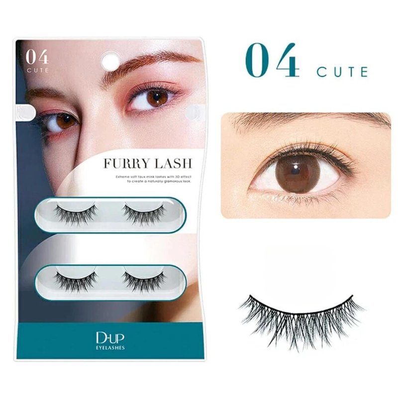 DUP Pack of 2 Pairs Furry Lash False Eyelashes, Japanese Long-Lasting Natural Look, Lightweight Fake Lashes for Everyday Wear Easily to Apply, Furry Lash 04 Cute