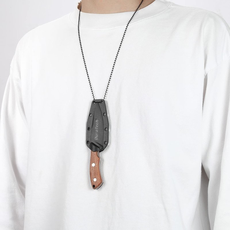 DURATECH Compact Fixed Blade Knife, 6-inch Neck Knife, 3-inch Blade, Full Tang, Wood Handle with Molded Sheath, Necklace and Paracord included, for EDC, Outdoor, Camping, Hiking
