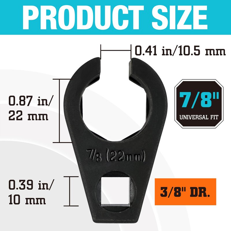 - Product Size: The O2 sensor socket has a standard 6-point shape. The socket size is 22mm/(7/8"), which can fit most oxygen sensors. The square hole size is 10mm/(3/8"), suitable for 3/8" drive ratchet or breaker bar.
