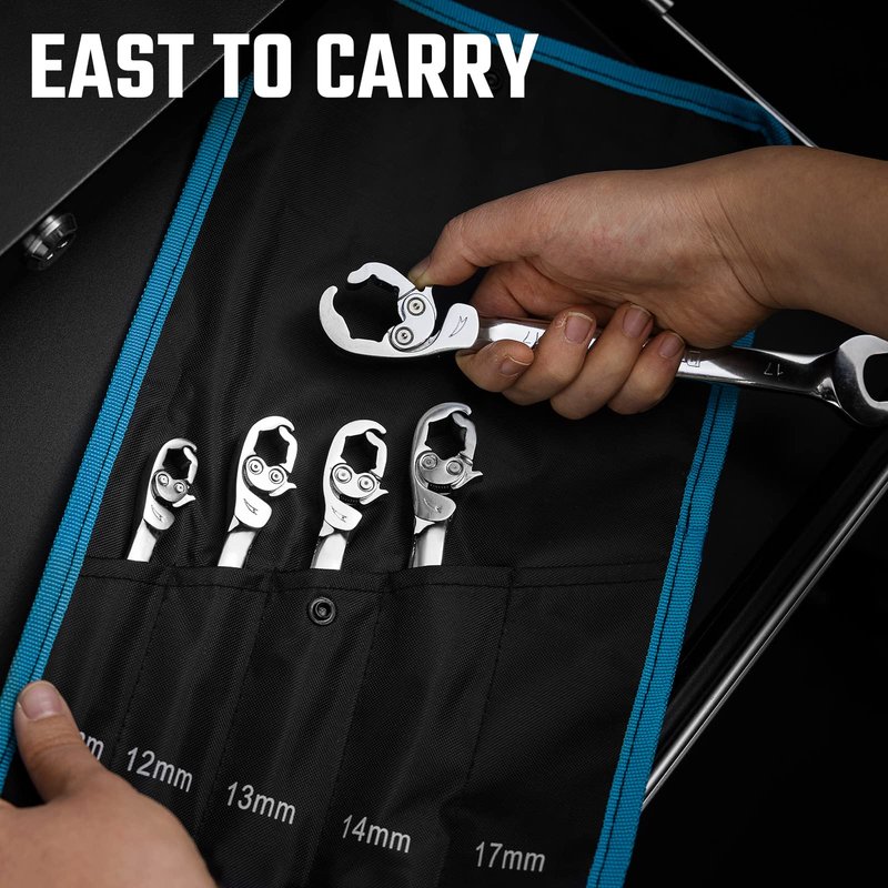 DURATECH Ratcheting Flare Nut Wrench Set, Open End Wrench Set, Metric, 5-Piece, 10, 12, 13, 14, 17mm, CR-V Steel, Organizer Pouch Included