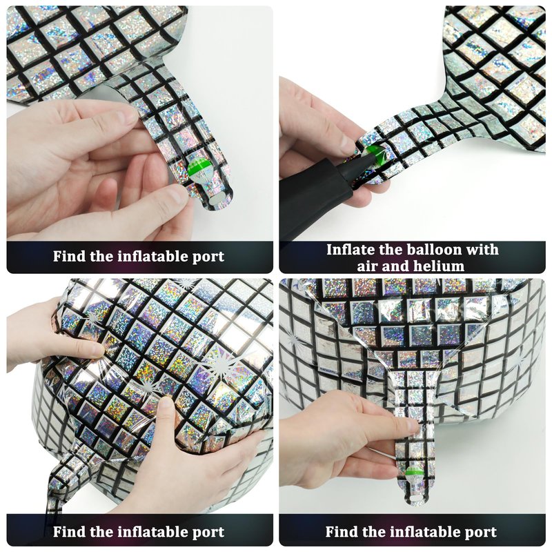 - Jumbo Size: the Disco Ball Balloon is 18 inches in length after being fully inflated, in order to avoid over-inflation, do not charge more than 75% of the air when inflating