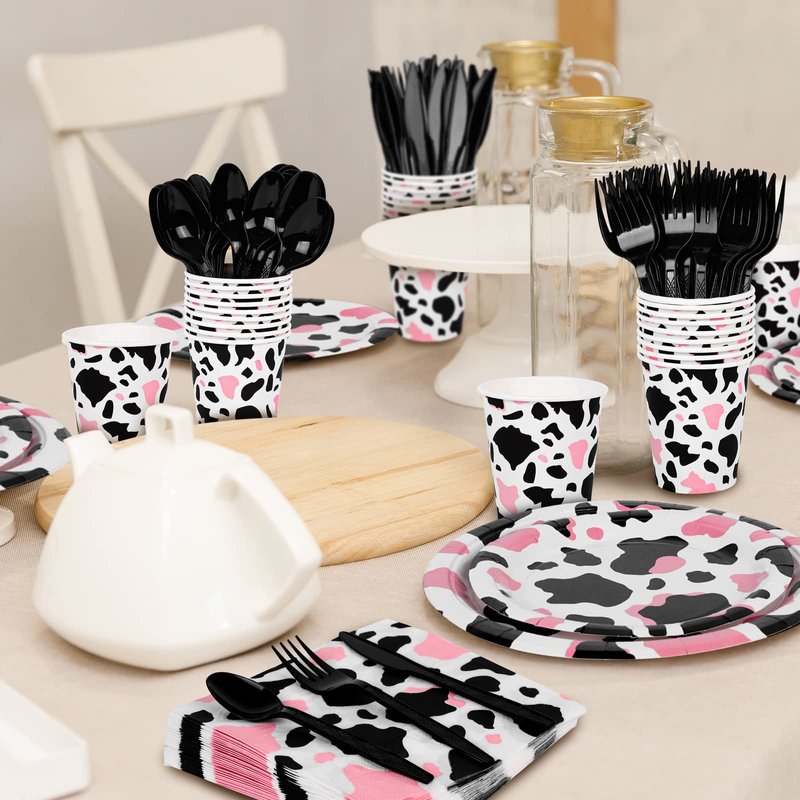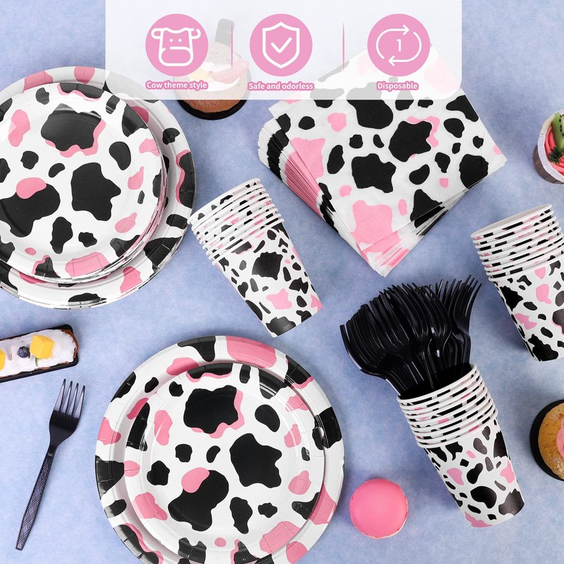 - Package content: you will receive 48 pieces of pink cow party plates, 24 pieces of cups, 48 pieces of napkins, 24 pieces of forks, 144 pieces in total; sufficient for your daily use needs and cow print party supplies