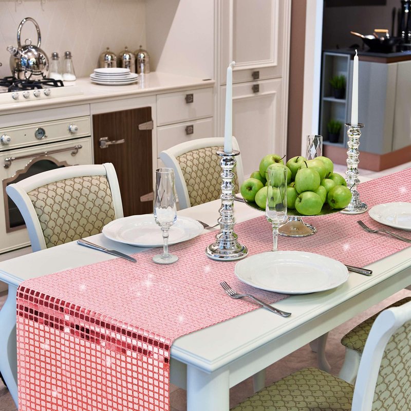 - Material: Our table runners are made of high quality sequins and polyester that not only looks great but is also reliable and won't fade easily. The mirror-like squares are carefully crafted onto the table runners, so they're long-lasting and resistant to water, oil, and stain. You can use it with confidence and for a long time to use.