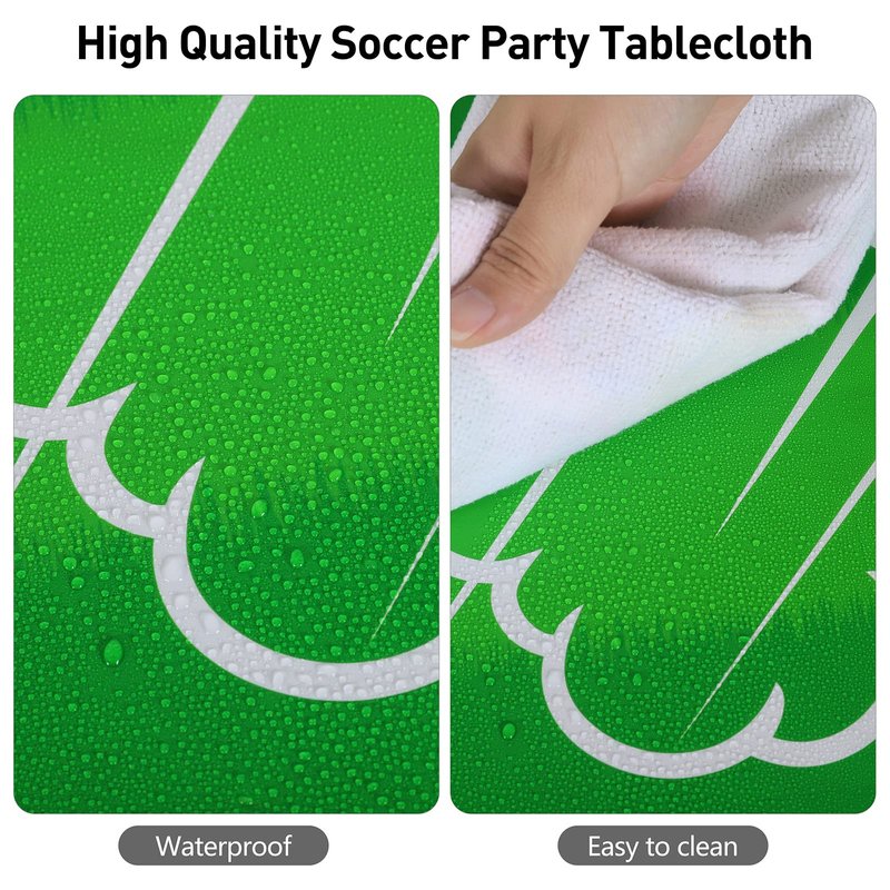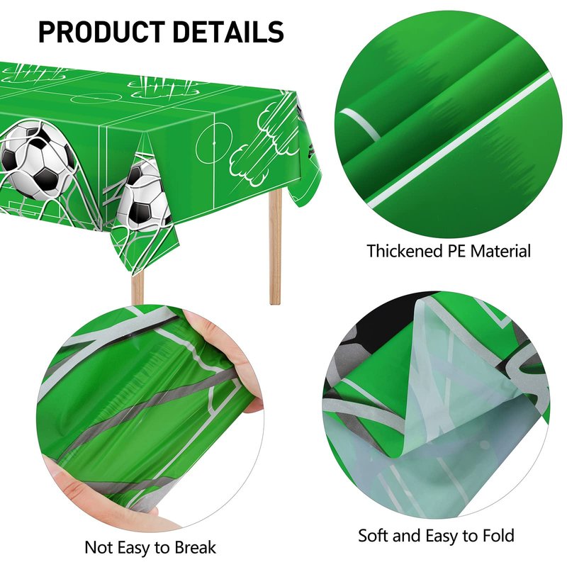 • Superb material: made of premium thickened PE material, our soccer party tablecloth is durable and odorless, non-toxic and safe, not easy to break or damage, which can easily protect your table and furniture from scratches and sunlight