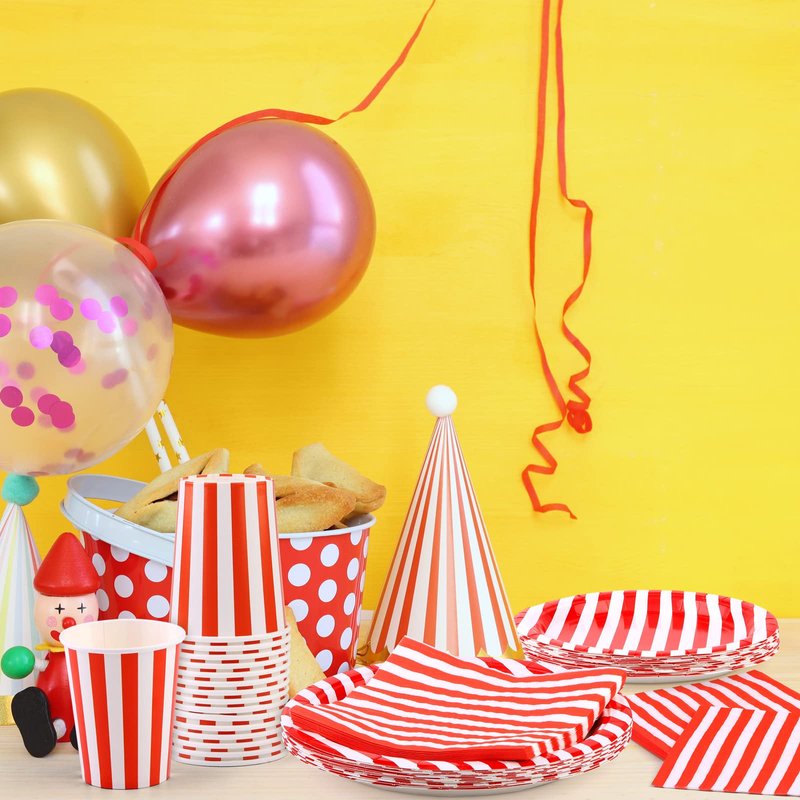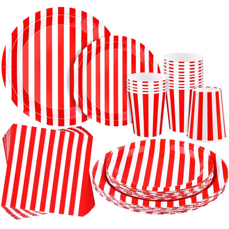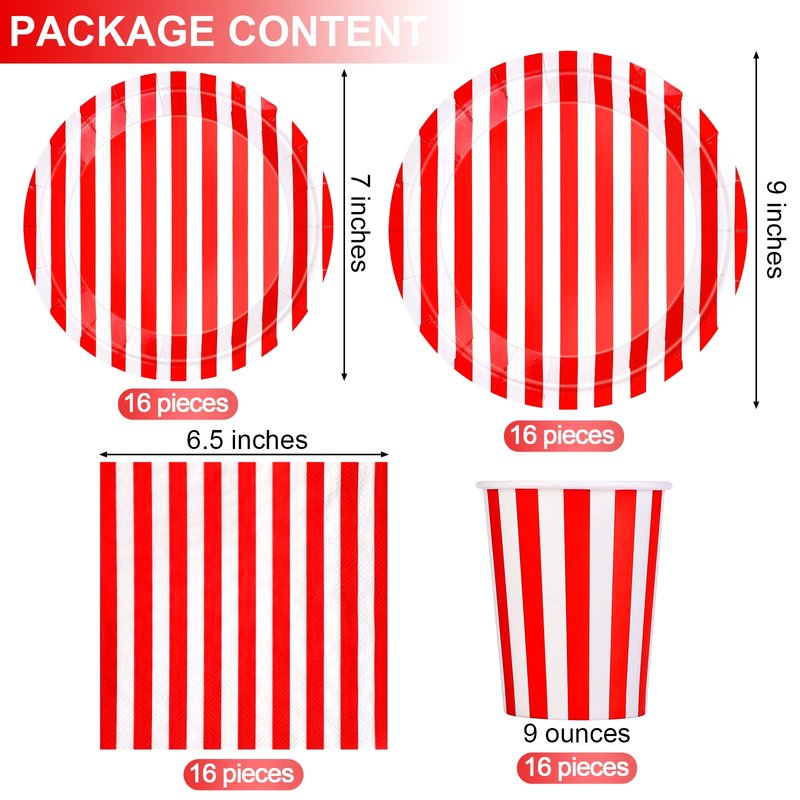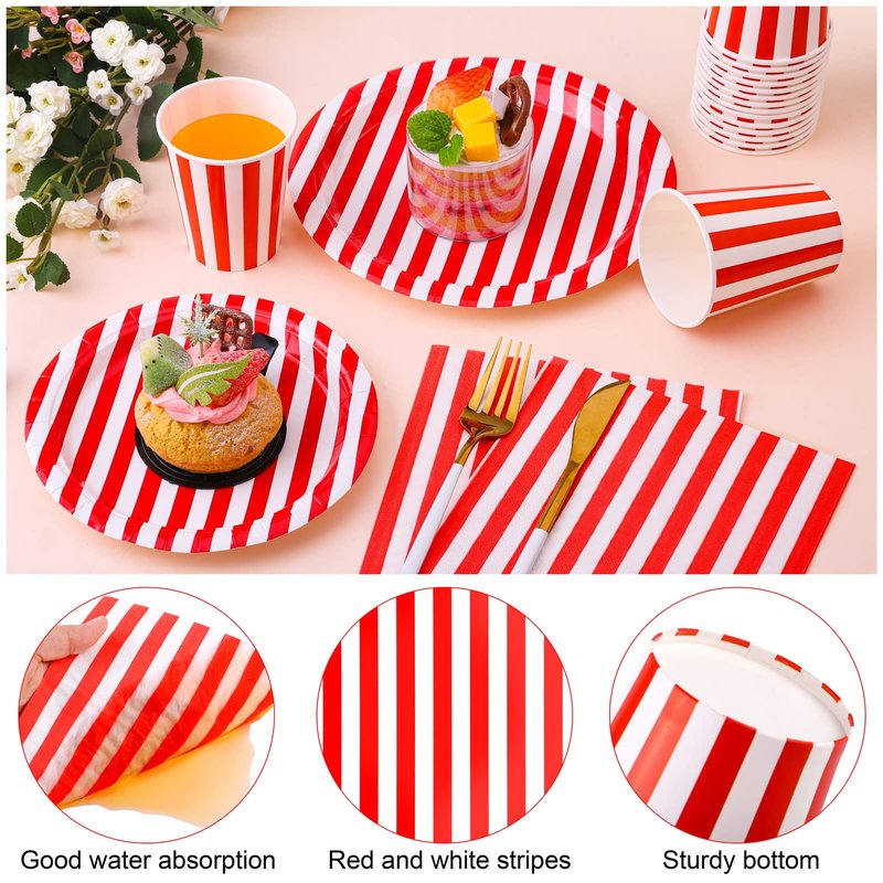 - Unique design: the carnival party decorations is designed with red and white stripes, simple but delicate, and the design is in line with the theme of carnival, therefore, the tableware can make your party more eye-catching