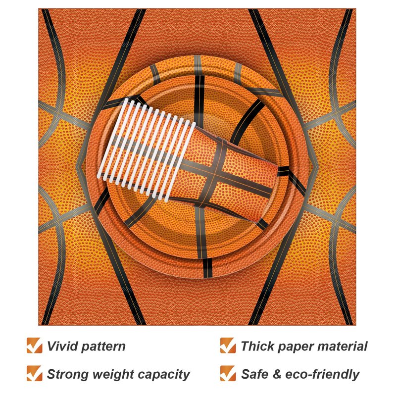 - Basketball theme: featuring the theme of basketball, our party supplies are printed with the pattern of basketball, which is very vivid and in line with the theme of basketball party; you can use these party supplies to decorate the dinner table of your party