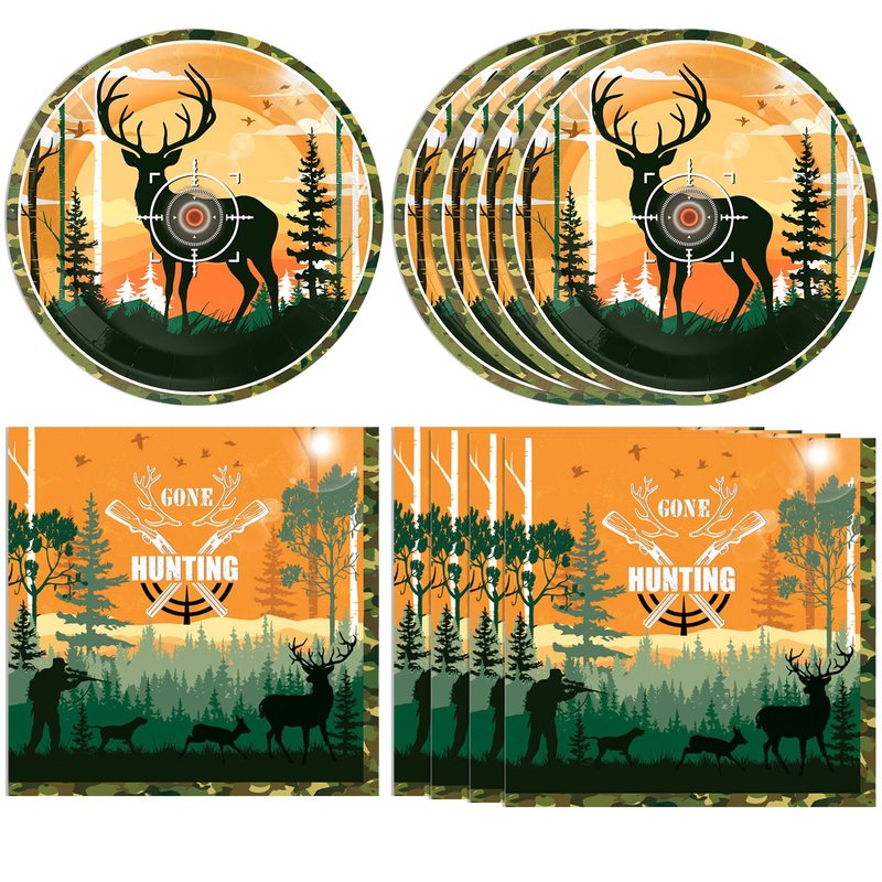 - Package includes: you will receive 20 dessert plates (7’’), 20 napkins (13’’), there are 40 pieces of decorations in total,These hunting party paper plates and napkins are a hit with people of all ages, making them perfect for a hunting baby shower or birthday party.