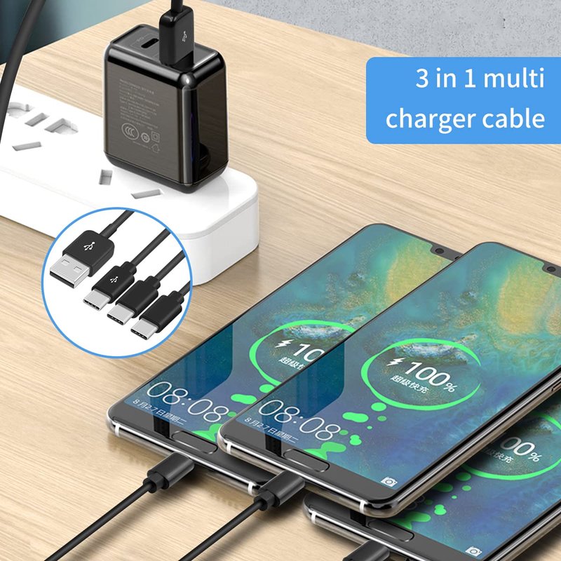 - Multi usb c cable: 3-in-1 usb a to usb c splitter cable equals three charging cables! With its advanced 3-in-1 design featuring three identical USB C ports, this cable is the perfect choice for travel, business, home, car, and office use. Cable length: 1.5m/5ft, making it easy to carry wherever you go. This USB C to Multi Charging Cable Splitter is not just a charging cable, but also a versatile charger that enhances your charging experience with ease and convenience.