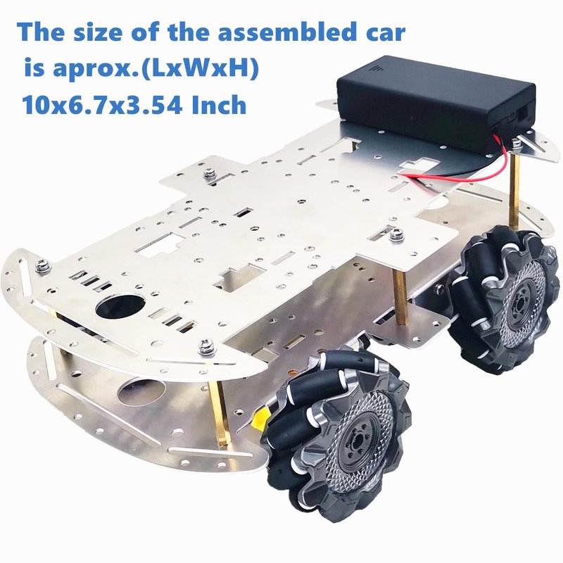 - 4WD mecanum wheel car chassis designed for both beginners and professionals to learn and develop electronics, science education, programming and robotics.