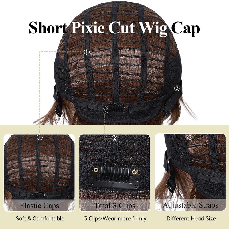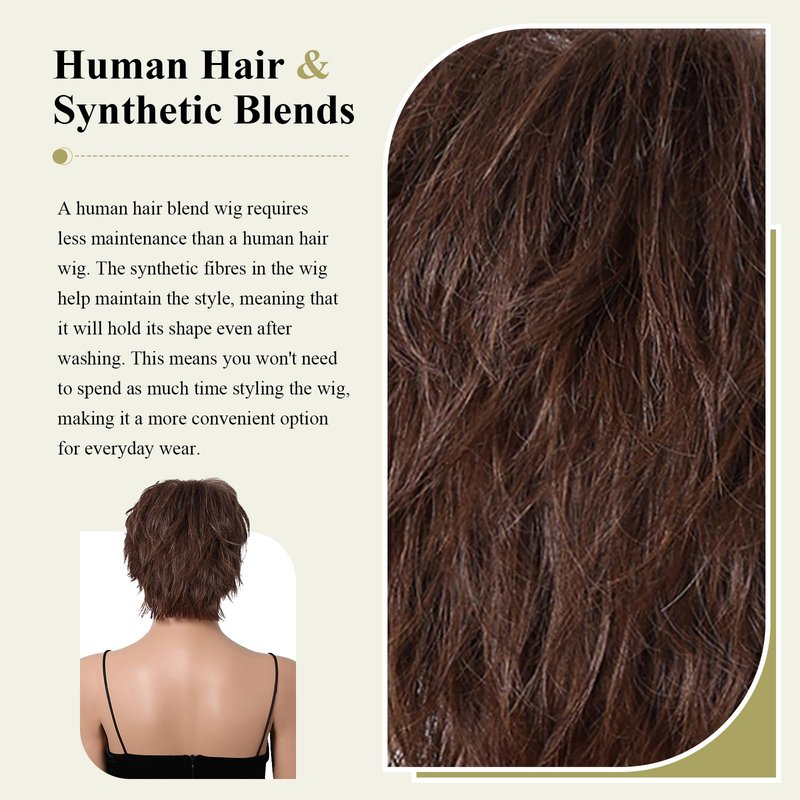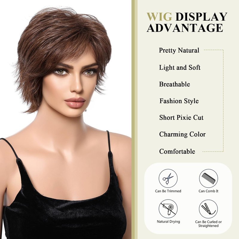 DWY Short Pixie Cut Wigs for Women Short Brown Human Hair Blend Synthetic Straight Wigs Natural Hair Replacement Wigs with Fluffy Bang,Lightweight/Breathable(Chocolate Brown)