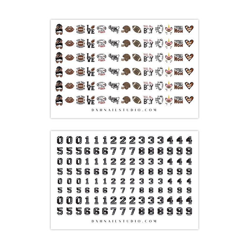 DXH NAIL CO 125PC Fun Football Nail Decals Leopard Print Girly Football Mom Nail Stickers Water Transfer Nail Art Jersey Numbers