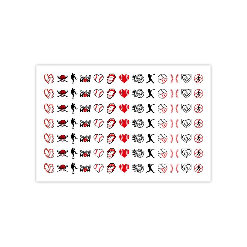 DXH NAIL CO Baseball Stitch Nail Decals Baseball Mom Softball Nail Art Water Transfer Sticker (RED)