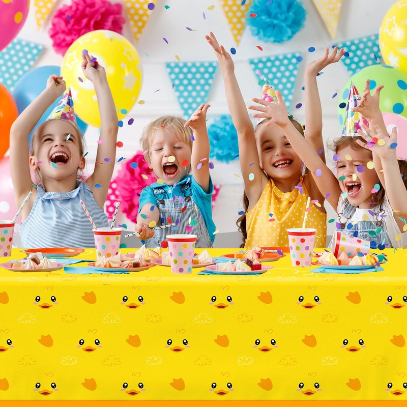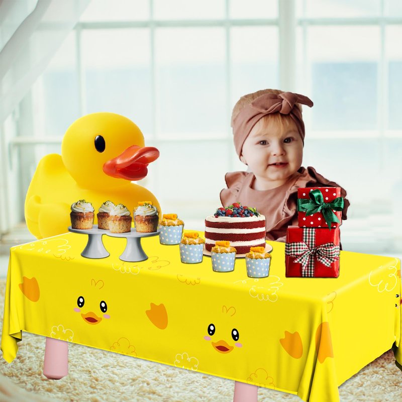 - What You Can Get: You will get 3pcs rubber ducky birthday tablecloths for parties,size 70.8x42.5inch.Sufficient quantity and size to meet most of your duckie party supplies. It will be a wonderful tablecloth and can give you a warm atmosphere