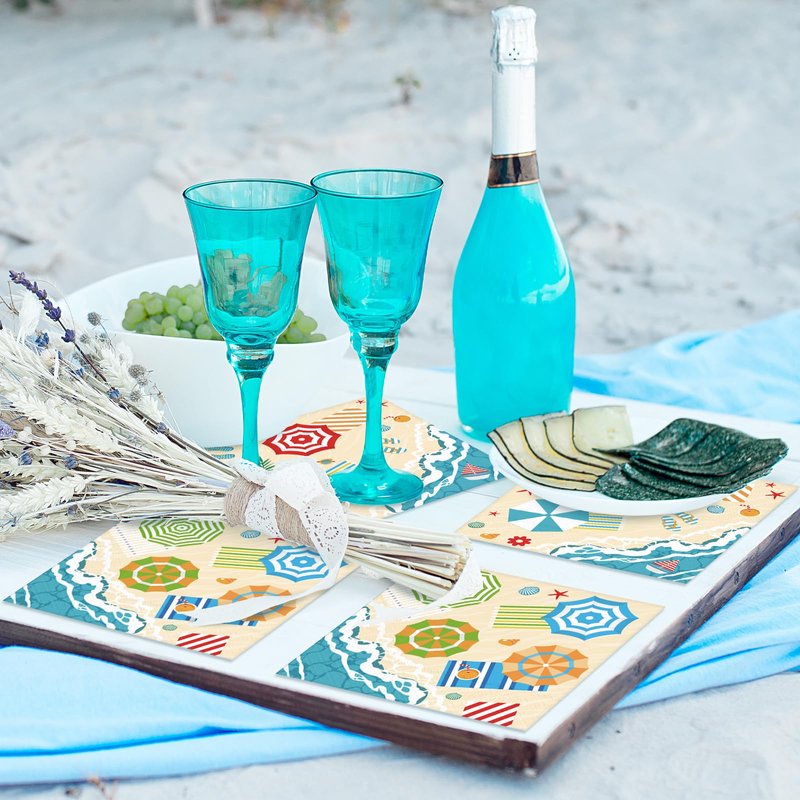 - 【PACKAGE】: 50-Count Cocktail, beverage, appetizer, or dessert birthday summer beach napkins, 3-Ply. Beautiful and unique design. Consider 2-3 sheets per guest. Size : 6.5" x 6.5" ( folded) , 13" x 13"(unfolded).