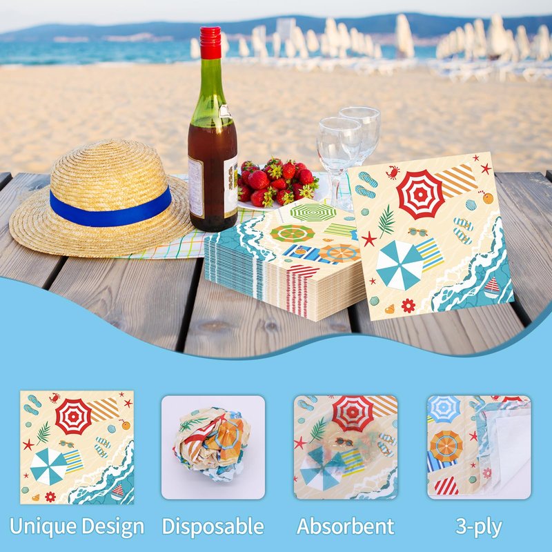 DYLIVeS Summer Beach Party Napkins, Hawaiian Beach Umbrella Paper Napkins Summer Pool Party Napkins for Luncheon Cocktail Summer Birthday Party Decorations Luau Tropical Party Supplies, 50 Pack, 3-Ply