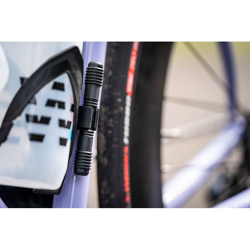 - A silicone tool holder is included. It neatly installs under the bottle cage so the Racer is easily accessible.