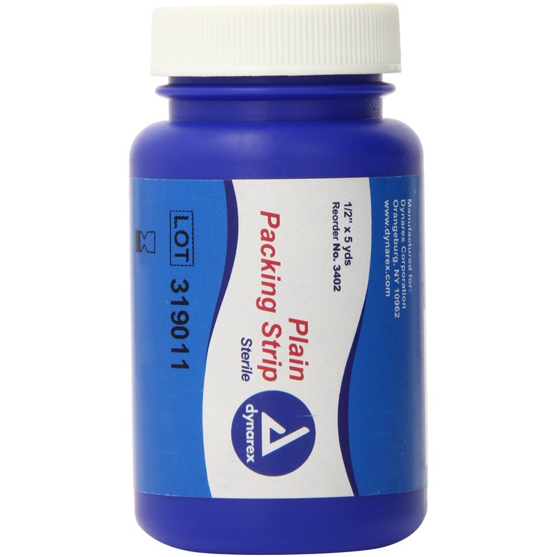 - SUPERIOR ABSORPTION: Dynarex Packing Strip, available in multiple sizes, with and without iodoform, are highly absorbent and used by professional medical personnel. The strip is sterile and packaged in a large bottle with a screw top cap