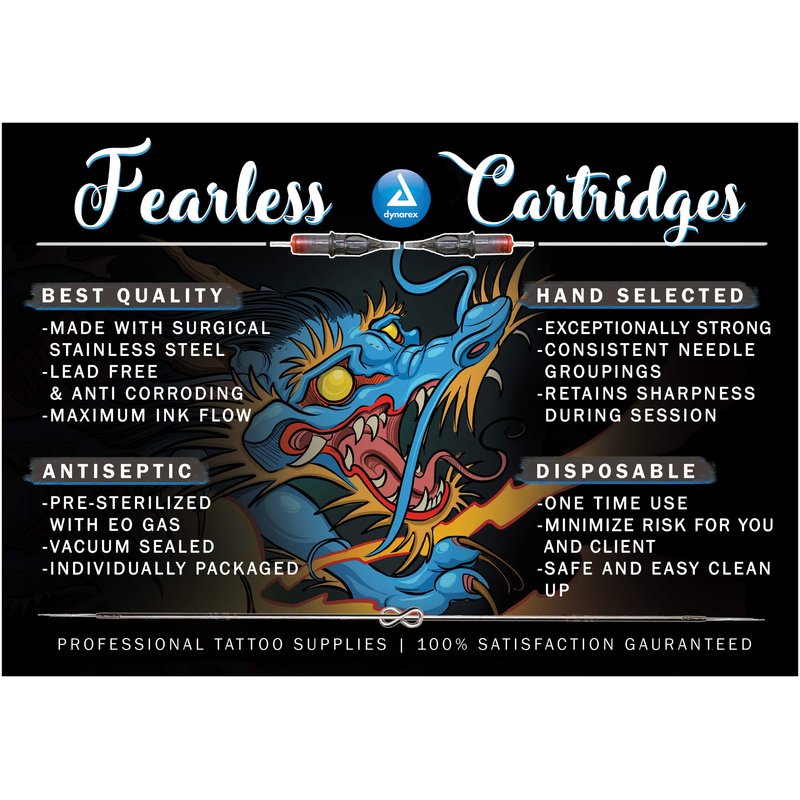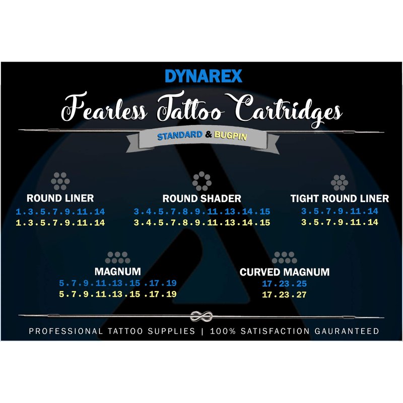 Dynarex Fearless Tattoo Cartridges Bugpin Round Liner, 1007rl, 20 Count