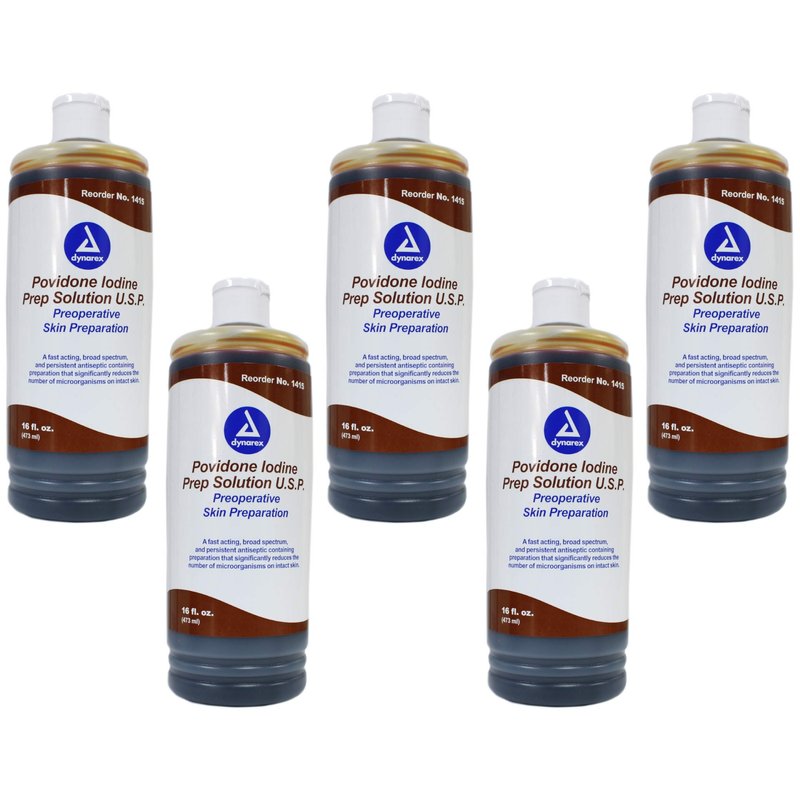 Dynarex Povidone Iodine Prep Solution USP, 16 Fluid Ounce (Pack of 5)