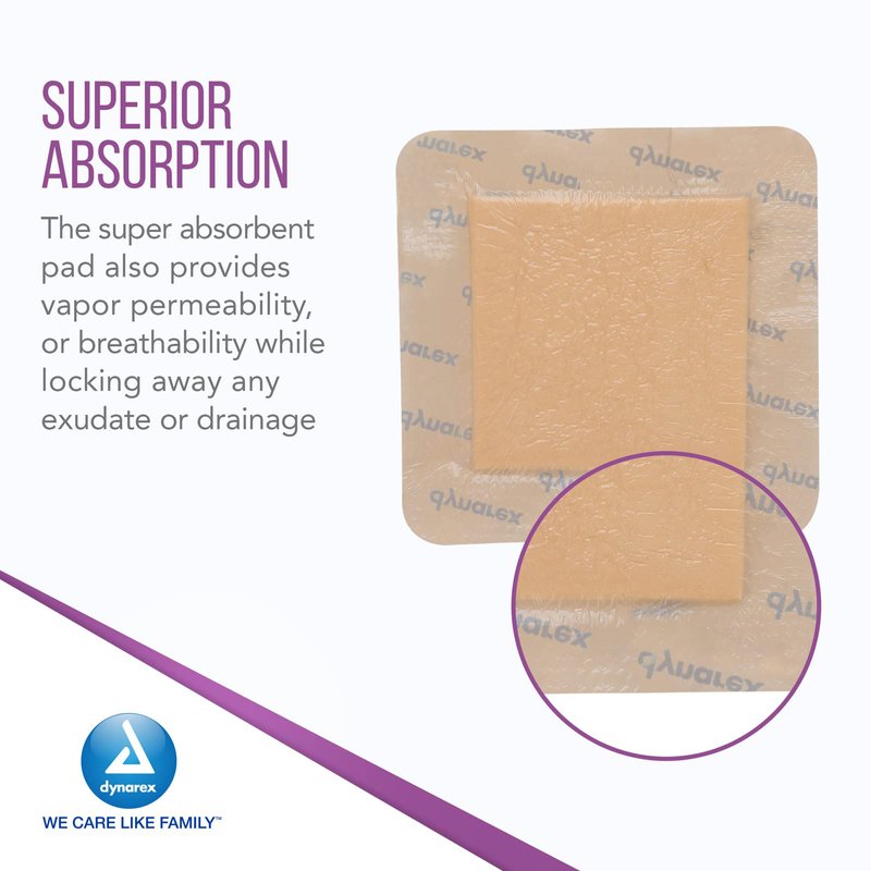 - SUPERIOR ABSORPTION: The super absorbent pad also provides vapor permeability, or breathability while locking away any exudate or drainage. These foam dressing are ideal for use with burns and blisters as well as deeper wounds.