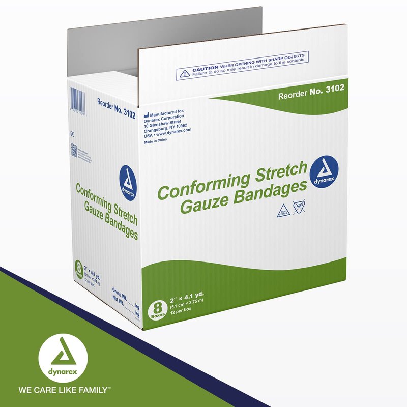 1 Case - 8 Boxes of 12 Dynarex Stretch Gauze Bandages, Non-Sterile, 2" x 4.1 yds
