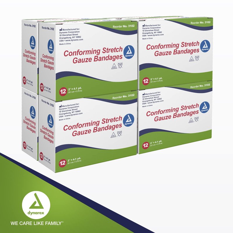 Dynarex Stretch Gauze Bandages, 2" x 4.1 yds, Non-Sterile & Latex-Free, Provides Wound Care in Medical and Home Environments, Individual Rolls, 1 Case of 8 Boxes of 12 Bandages