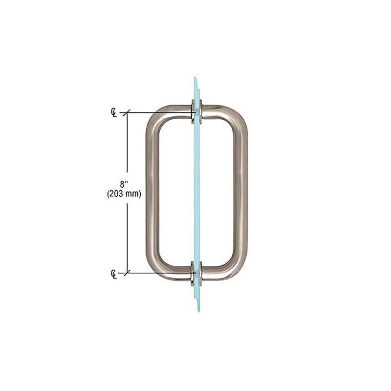 The Dynasty Hardware 8" back to back shower door handles are designed to work with most frameless shower doors. This shower door pull will fit on any frameless shower door with 1/2" diameter holes spaced 8" apart center to center. This shower door pull comes with protective plastic washers and mounting hardware. Trim Washers Included.