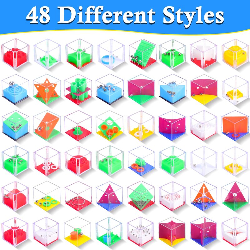 Dyrfolm 48 Pcs Brain Teaser Puzzles for Kids,Mini Maze Puzzle Cubes,Assorted 3D Brain Teaser Puzzle Cubes,Mini Fidget Puzzle Box,Balance IQ Maze Cube Game Party Favor Games Challenge Decompression