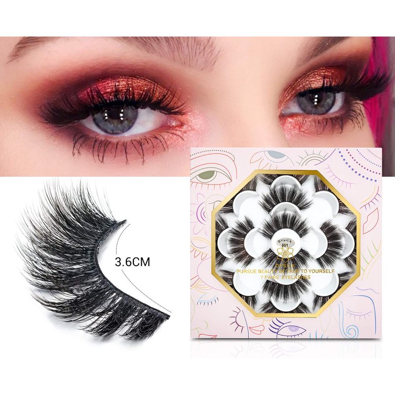 DYSILK Eyelashes False Lashes - Mink Lashes Fluffy 7 Pairs Lashes Natural Look 6D Fake Eyelashes Cat Eye Lashes Wispy Eyelashes Fluffy Lashes Reusable Lashes Pack Pestañas Postizas Naturales |001