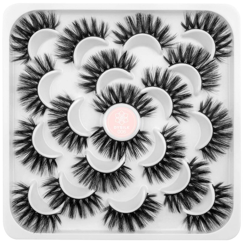 DYSILK Eyelashes Russian Strip Lashes - False Eyelashes Natural 10 Pairs 6D Lashes Pack Mink Eyelashes Wispy Fluffy Reusable Cat Eye Lashes Fake Eyelashes Lashes Natural Look | 17mm