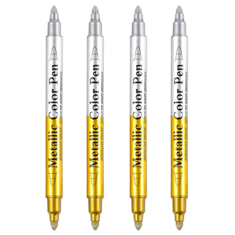 Dyvicl Metallic Markers Pens, Permanent Dual Tip Metallic Silver and Gold Paint Pens are excellent choices for creating your DIY art. With each marker with both gold and silver ink, you get more for your money, essentially buying eight pens rather than four. Great on dark-colored papers and especially festive for holiday cardmaking or scrapbooking. you can work on surfaces such as paper, cardstock, rock, plastic, fabric, metal, wood, ceramic, glass, mirror, and more. The metallic gold and silver markers are better for special projects such as writing on glass, wood, or metal. They are great for doing calligraphy projects such as wedding signage.